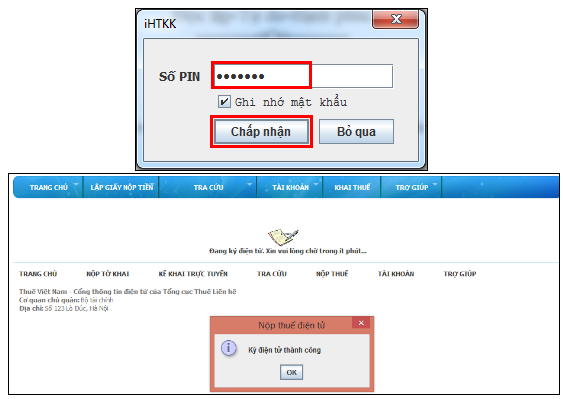 Truy cập vào nhantokhai.gdt.gov.vn -> Tìm nút Đăng nhập ở góc phải trên -> Xong thì tìm mục NỘP THUẾ và click chọn. Bạn chọn ngân hàng mà bạn đã có Tài Khoản để nộp thuế, điền các thông tin cần thiết vào rồi TIẾP TỤC. Giao diện mới hiện ra, bạn chọn Ký Điện Tử, Nhập mã PIN vào (nếu chữ ký số hết hạn phải gia hạn chữ ký số ngay) -> OK -> Gửi đăng ký.