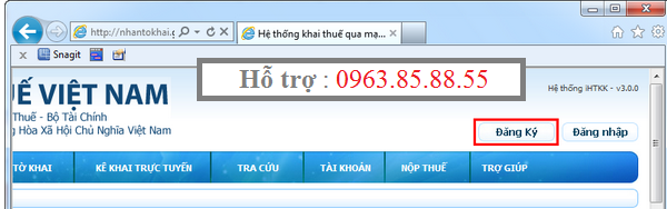 Để đăng ký chữ ký số trên trang nhận tờ khai, đầu tiên cắn USB token vào máy rồi dùng trình duyệt Internet Explorer 7 hoặc 8 hoặc Chrome để truy cập trang nhantokhai.gdt.gov.vn. Sau đó tìm nút Đăng Ký ở góc phải trên của trang web để tiến hành đăng ký.